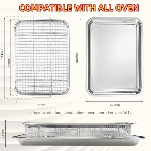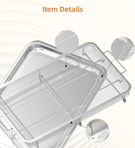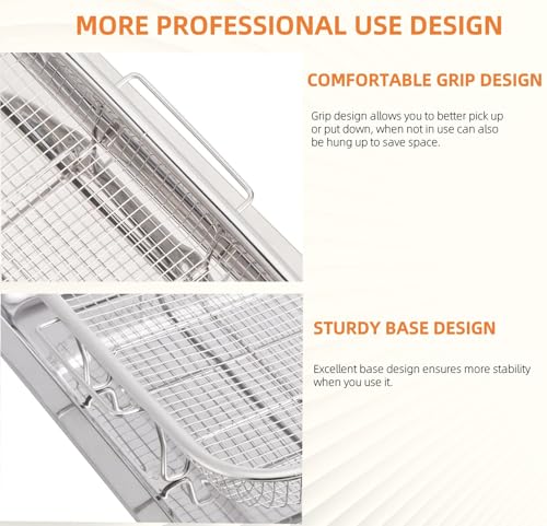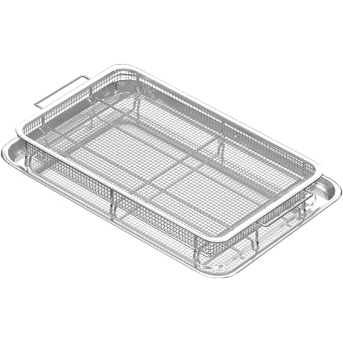 Foglapius - Extra Large Air Fryer Basket and Tray for Oven, 18.8" x 13.3" Set, Thickened Stainless Steel Pan for Frying Baking, Dishwasher Safe
