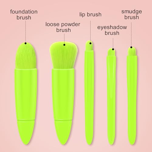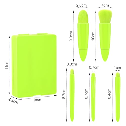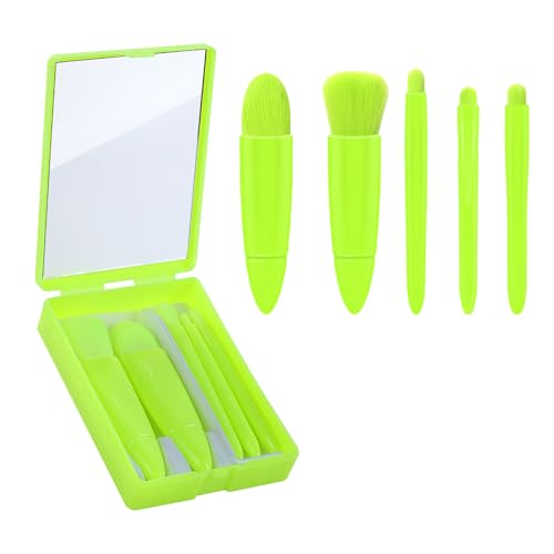 Fogrime - مجموعة فرش مكياج صغيرة مع مرآة صغيرة محمولة وشعيرات ناعمة لعاشقات المكياج أثناء السفر للنساء من فوجريم - 5 قطع - أخضر
