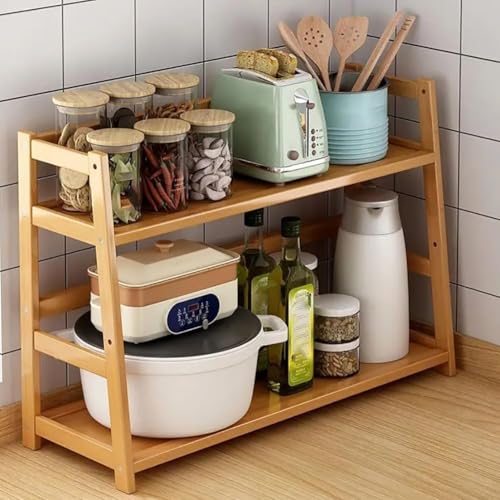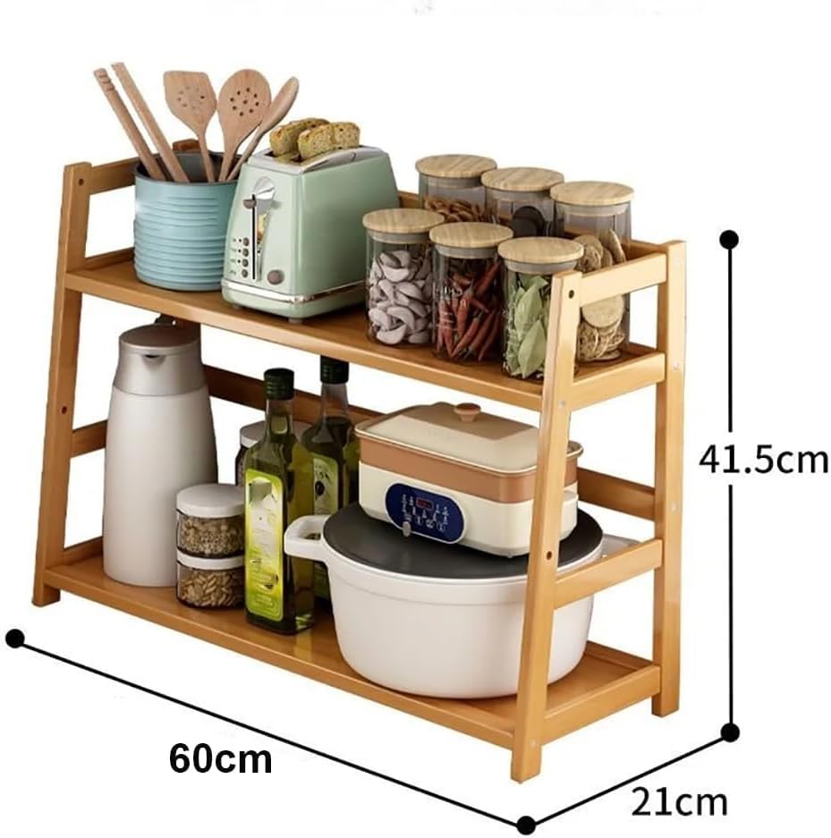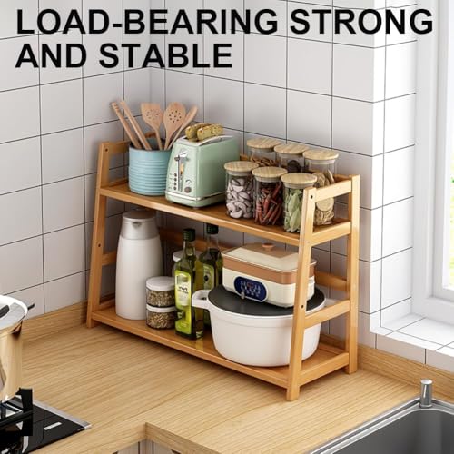 Fohome - 2-Tier Bamboo Shelf,Versatile Desktop Organizer & Kitchen Storage, Bathroom Shelf Rack, Space-Saving Office Desk Organizer & Plant Stand, Natural Wood Display Rack, Durable & Eco-Friendly Desig