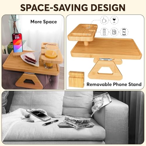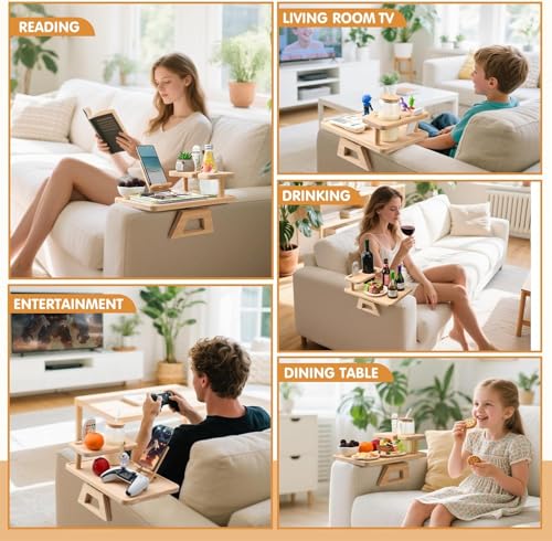 - 【Perfect companion for relaxation】Sofa Tray table is ideal for enhancing your home entertainment experience. Whether you want to watch a movie, read or relax, it is the ideal place for you to place snacks, drinks and mobile phones.
