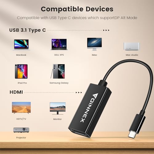 - 【Plug & Play】Foinnex USB-C to HDMI cord allows you to connect one HDMI monitor/display in 4K@60Hz resolution. No additional software is required. The perfect solution for your USB-C devices to expand your horizons. Note: Apple M1 & M2-based devices only support ONE external display.