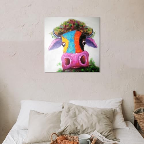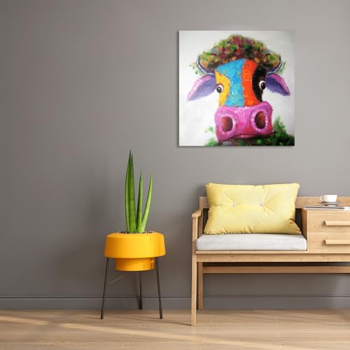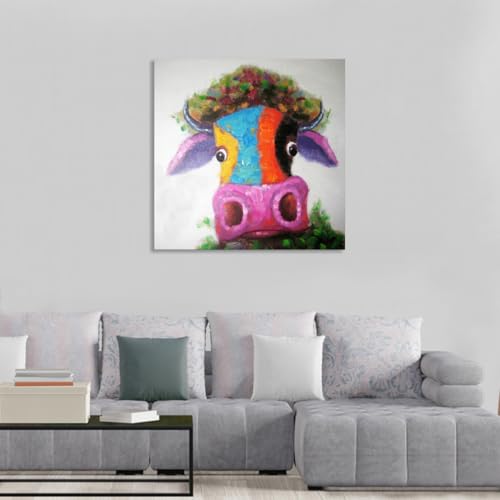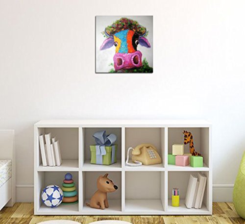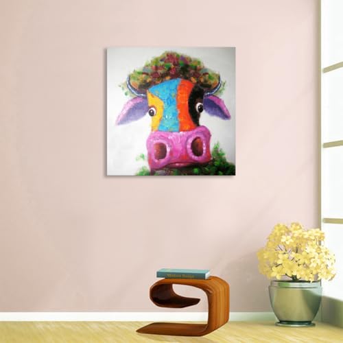 - Pop art painting on canvas,bright and multiple colors,cute little cow/bull's head with big nose,absolutely light up your room