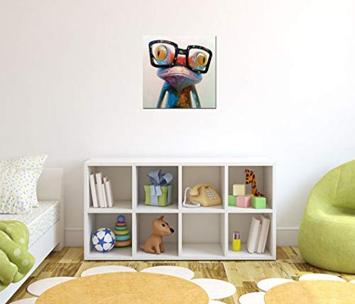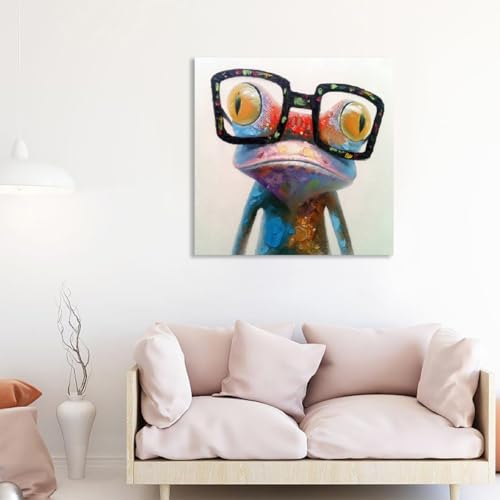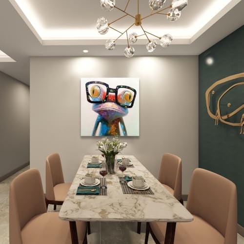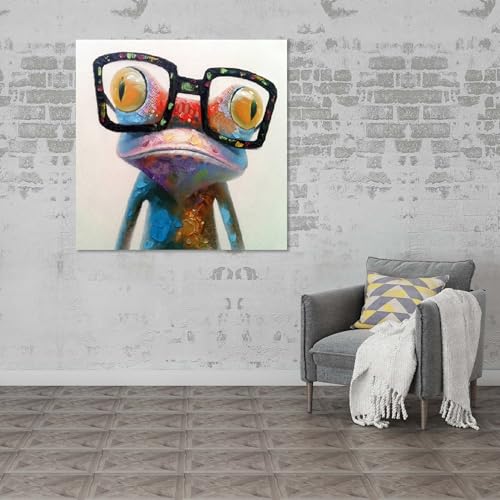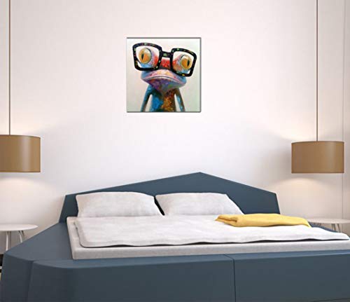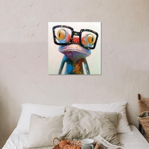 Fokenzary - Hand Painted Oil Painting Pop Frog with Glasses on Canvas Wall Art Framed Ready to Hang (24x24in)
