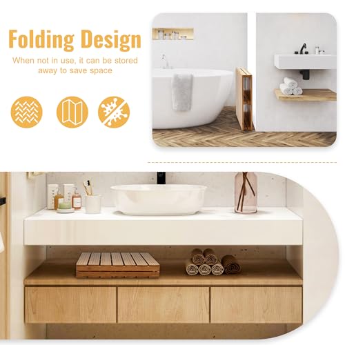 - Superior Stability & All-Around Non-Slip Safety : Featuring a secure locking mechanism when unfolded and soft, non-slip rubber feet on the bottom, this mat stays firmly in place on any floor surface. It provides a stable, secure footing when you step out of the shower, protecting both you and your floors from scratches and slips.