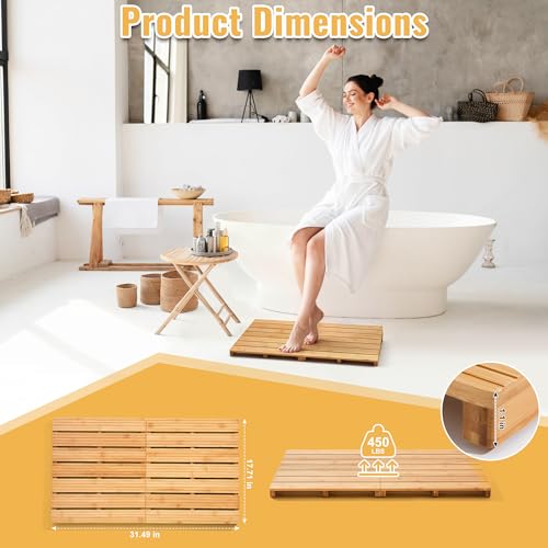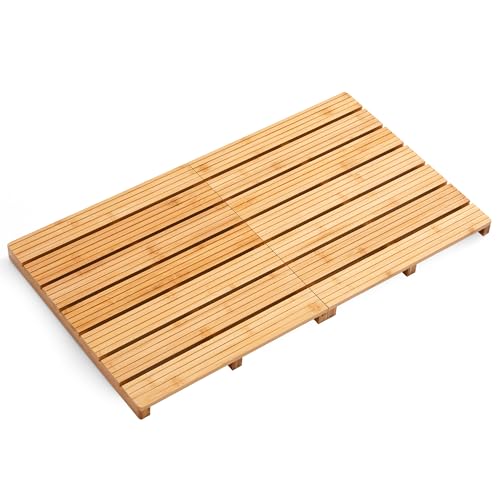 goodleben - Foldable Bamboo Bath Mat for Shower, 31.49" x 17.71" in Non-Slip Wood Bathroom Rug, Quick-Dry Waterproof Carpet for Indoor Outdoor Use by Sink, Tub, Pool