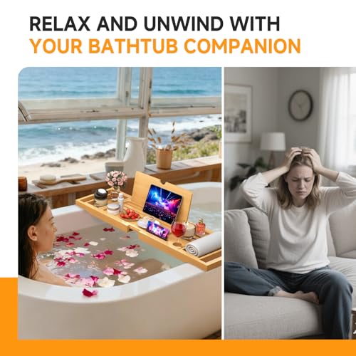 - Unleashing The True Essence of Relaxation-Using bath tray for tub has been a revelation. Not only does bath tub caddy provide a convenient space for all your bath essentials, but it also elevates the overall experience. You will be more immersed in relaxation, had more tranquility, and your bathing routine became a cherished ritual all because of this exceptional bath table tray. You can put a handful of relaxation accessories on bath caddy and have had no problem at all with the performance