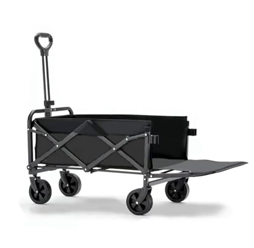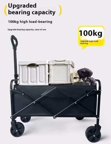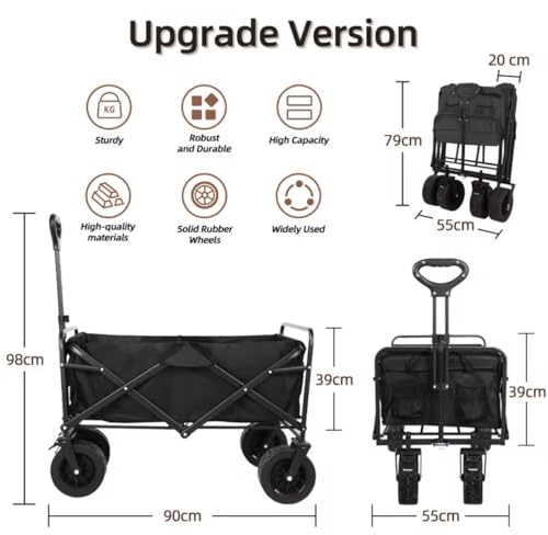 Generic - Foldable Beach Wagon, Collapsible Utility Cart with Solid Rubber Wheels, Black, Heavy Duty Outdoor Wagon for Camping and Shopping