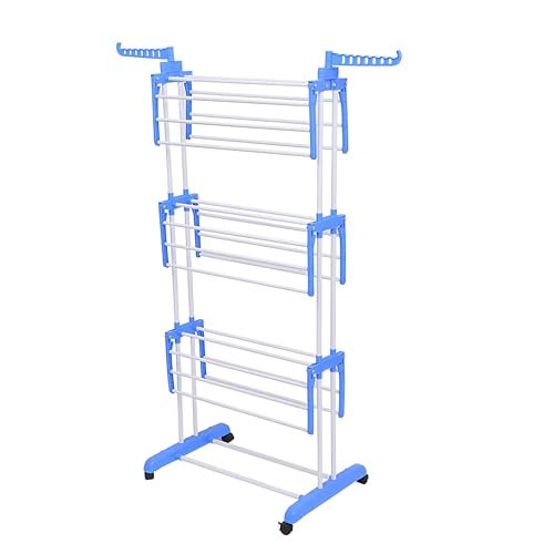 - Its blue, space-efficient structure measures 75 x 76 x 175 cm, with each rack foldable downward to reduce footprint, making it ideal for small laundry rooms, balconies, or upper floors where space is limited but drying needs are high.