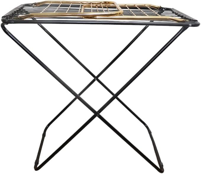 - هيكل معدني قوي ومتين يضمن استخدام يدوم طويلًا، تصميم قابل للطي: تسمح آلية الطي على شكل حرف X بتخزين بشكل محكم عندما لا يكون منشر الغسيل قيد الاستخدام، مما يجعله مثاليًا للمساحات الصغيرة والشقق.