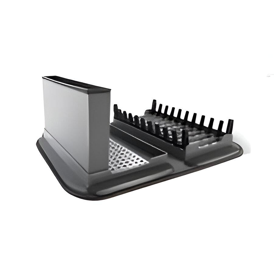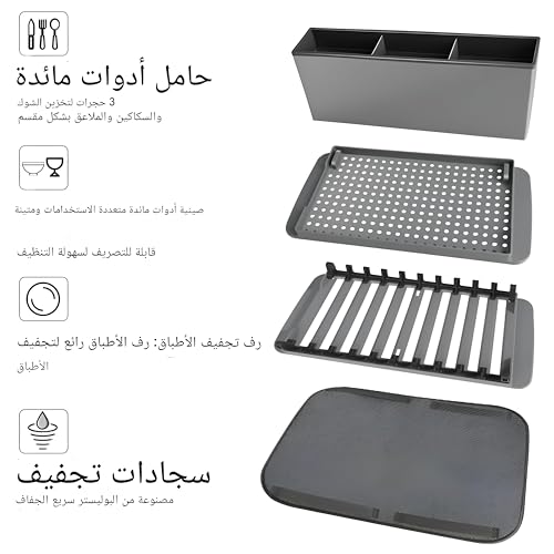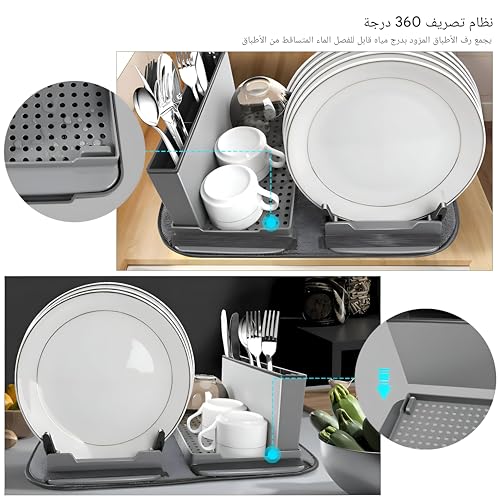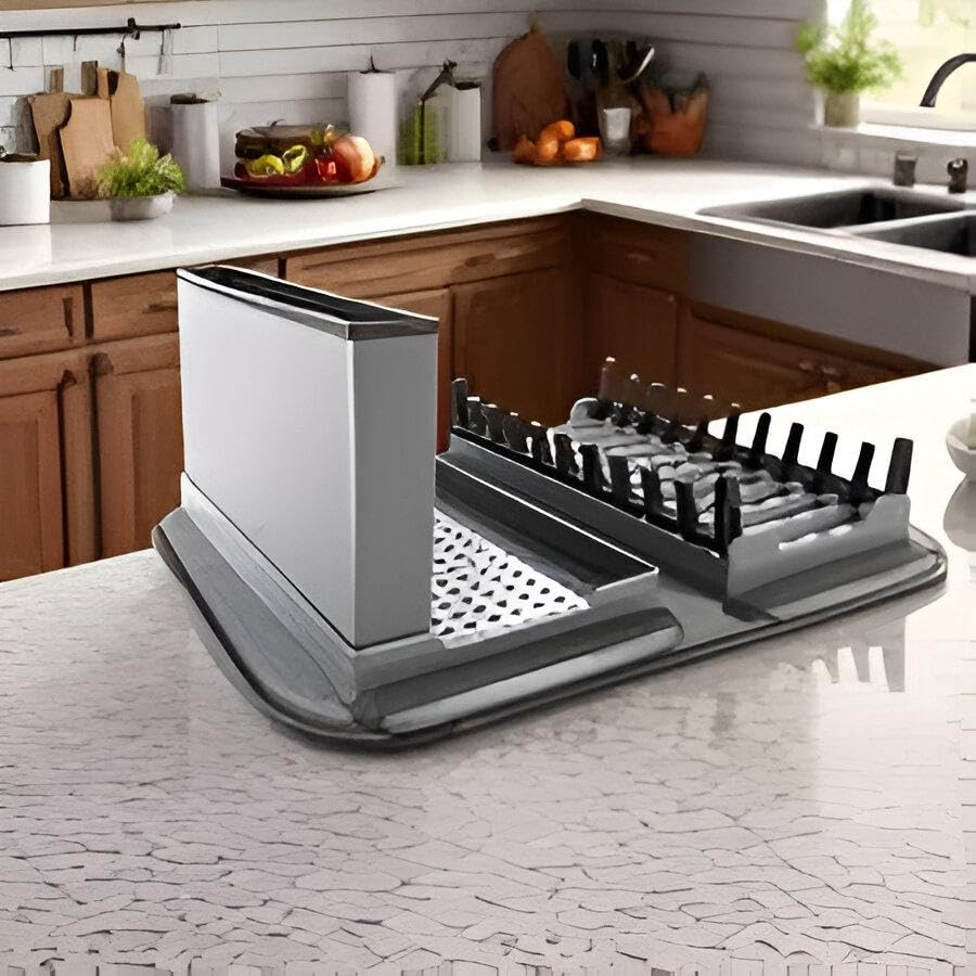 Generic - Foldable Dish Organizer - Multi-Functional Kitchen Rack with Cup and Utensil Strainers, Space Efficient, Washable Mat, Gray Finish for Easy Drying