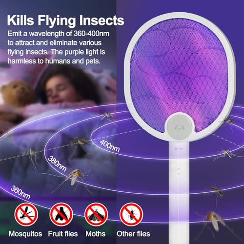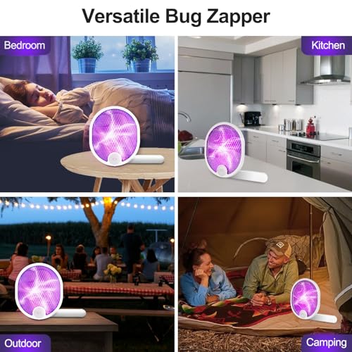 - 💰【2-In-1 Multifunctional Swatter & Zapper Lamp】Use it in two convenient modes: manually, like a swatter, or set it on a table to function as a bug zapper. It features a built-in mosquito light trap; the purple LED light beads emit a 395mm wavelength that attracts bugs and effectively zaps them!
