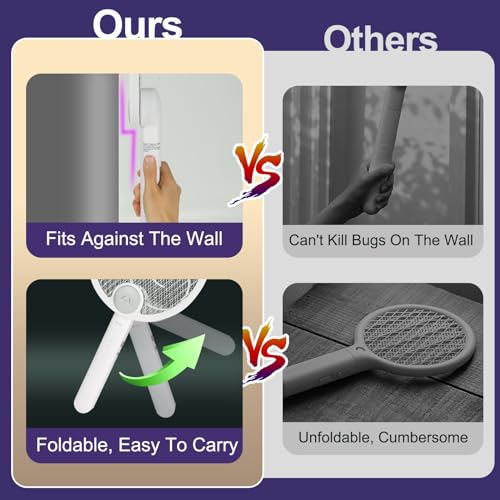- 🌟【Foldable & Portable Design】Carry it to swat mosquitoes, place it on a table, or hang it on a wall. The handgrip rotates 180° to fit comfortably in your bag, making it perfect for taking along on camping or any outdoor activities.