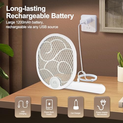 - 🔋【Long-lasting Battery】Equipped with a robust 1200mAH battery, this USB rechargeable bug zapper racket offers superior endurance. It's eco-friendly and cost-efficient, providing lasting performance without the need for frequent replacements.
