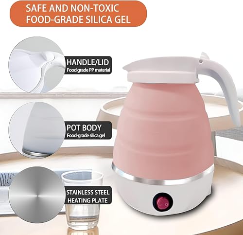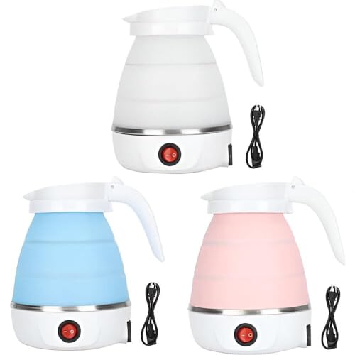 Generic - غلاية كهربائية للسفر قابلة للطي خفيفة الوزن لتسخين سريع مصنوعة من سيليكون آمن غذائيا بجهد 110-220 فولت مناسبة للتخييم الاستخدام المنزلي والمكتبي، متعددة ألوان، سعة 600 مل