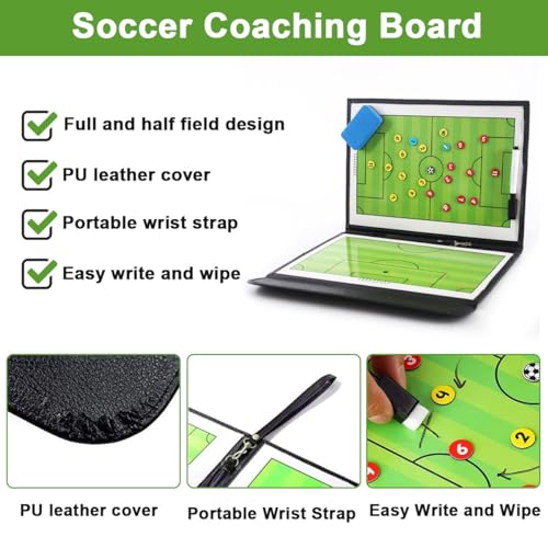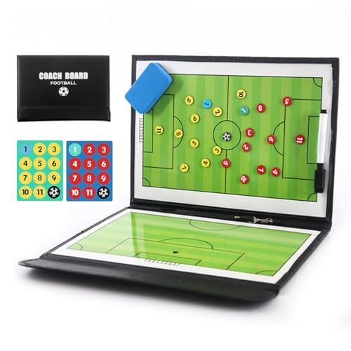 LuzCadaVez - مجموعة لوح تدريب كرة القدم المغناطيسي التكتيكي القابل للطي، دفتر ملاحظات استراتيجية كرة القدم، معدات مساعد التدريب الرياضي مع قلم ماركر اللاعب وزر مغناطيسي استيكة جافة