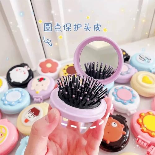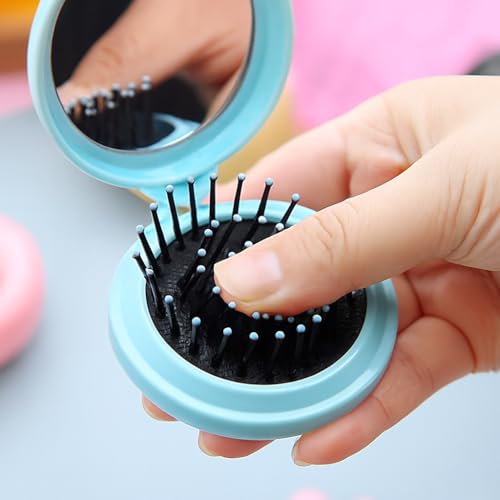Generic - Foldable Hair Brush with Mirror, Compact Travel Size