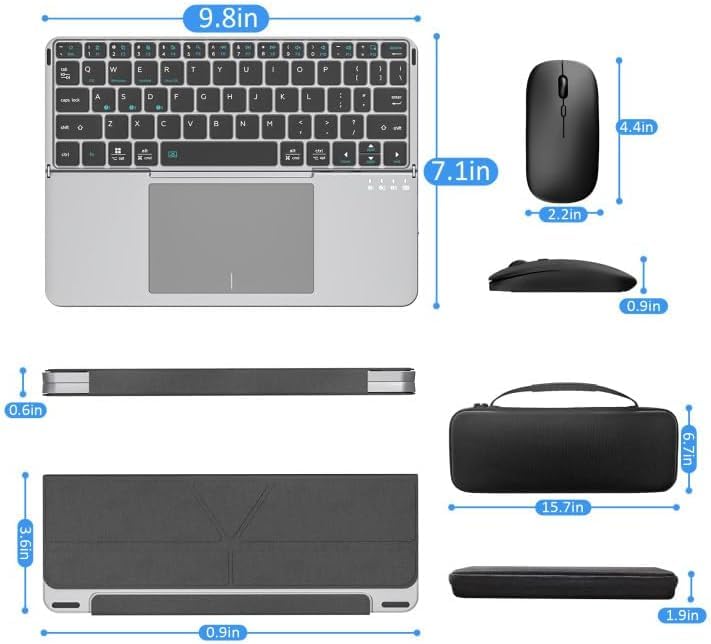 - كيبورد قابلة للطي مع لوحة لمس: تتميز كيبورد البلوتوث القابلة للطي مع لوحة اللمس بتصميم محسن يسمح لك بالتكيف بشكل مثالي مع عملك، بالإضافة إلى 13 مفتاح وسائط متعددة للوصول السريع إلى مجموعة متنوعة من الوظائف