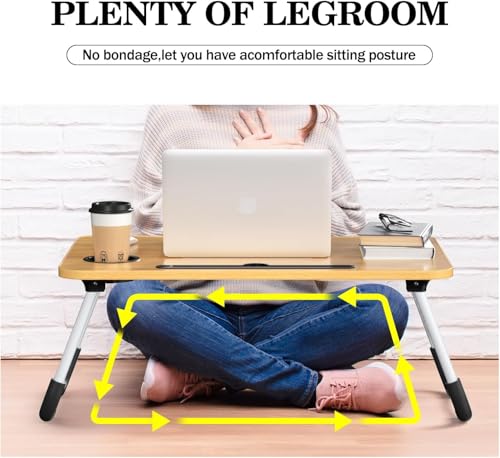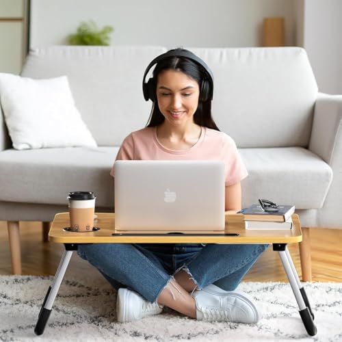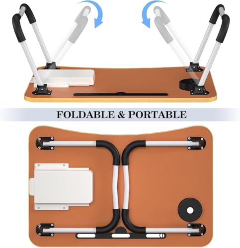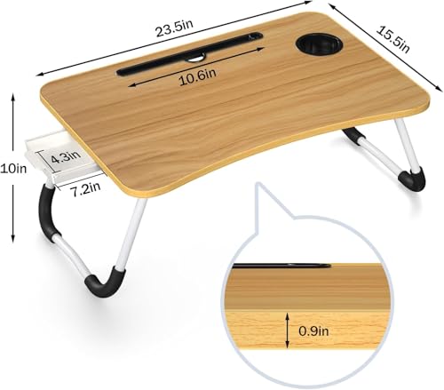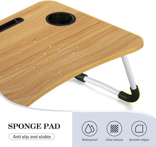 - Folding Laptop Bed Tray, Folding Laptop Desk with Cup Holder, Portable Breakfast Serving Tray with Storage Drawer/Tablet Stand / Work Writing Bed Dining Sofa Floor - Natural