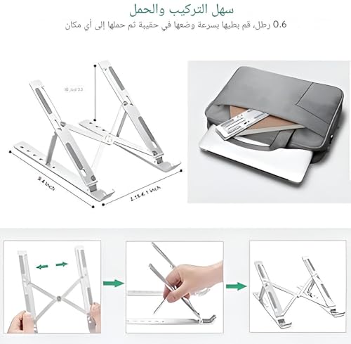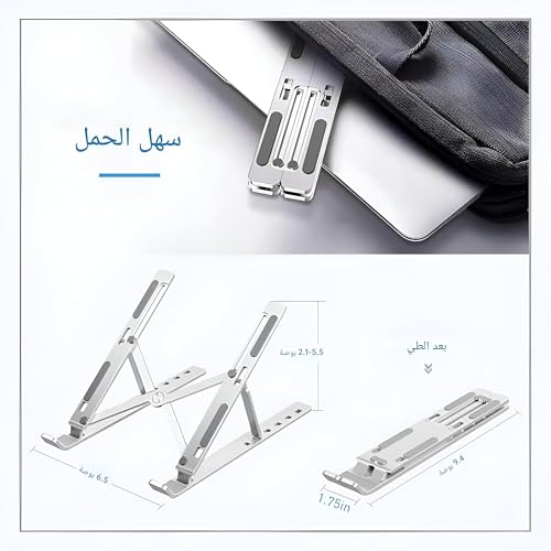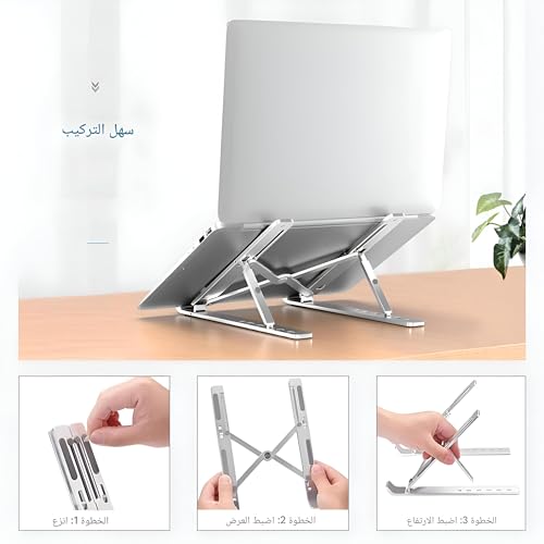 Generic - حامل لاب توب قابل للطي - ارتفاع قابل للتعديل، تصميم من الألومنيوم مع أقدام غير قابلة للانزلاق، حامل مريح لوضعية وراحة أفضل