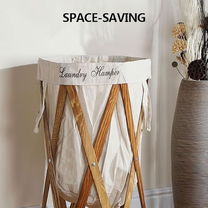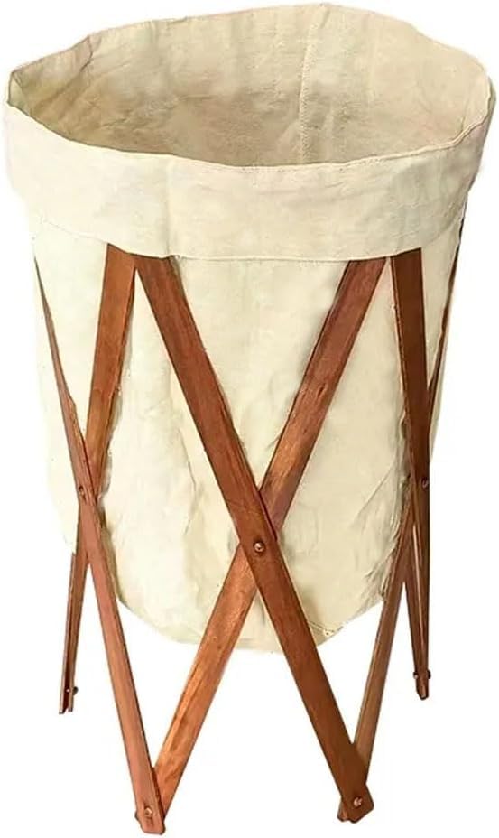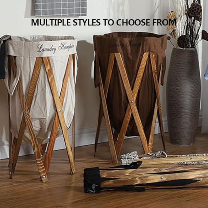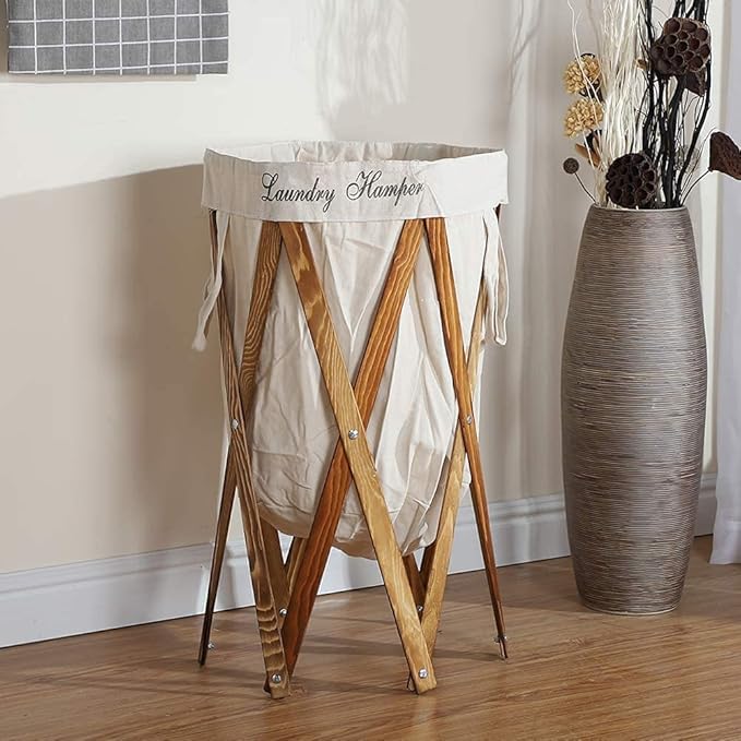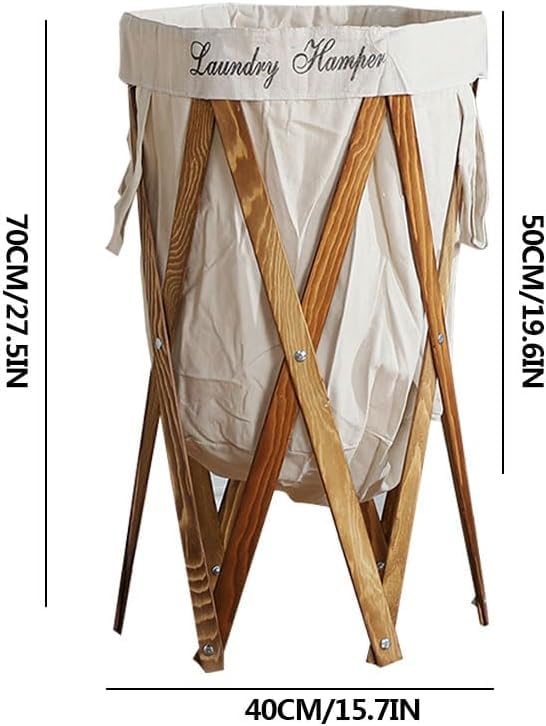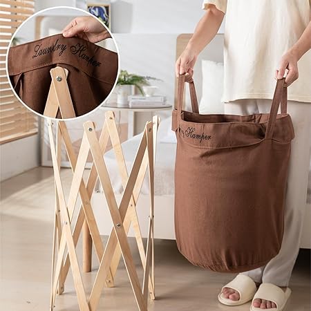 Generic - Foldable laundry basket with wooden frame, rustic laundry hamper, removable fabric bag with handles for bathroom use.