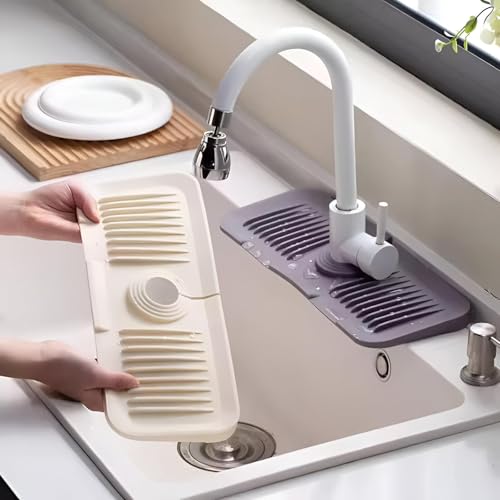 - Designed with an angled design and integrated drain channels, this spray protector for kitchen sinks effectively direct the water flow. thus reducing spray and promoting drying faster. This feature is a thoughtful design ensure that excess water is directly guided away effectively, keeping cleaner and more healthy meters. By allowing for quick drying, it also helps prevent mold and mold buildup, promoting the overall hygiene of your tub area.