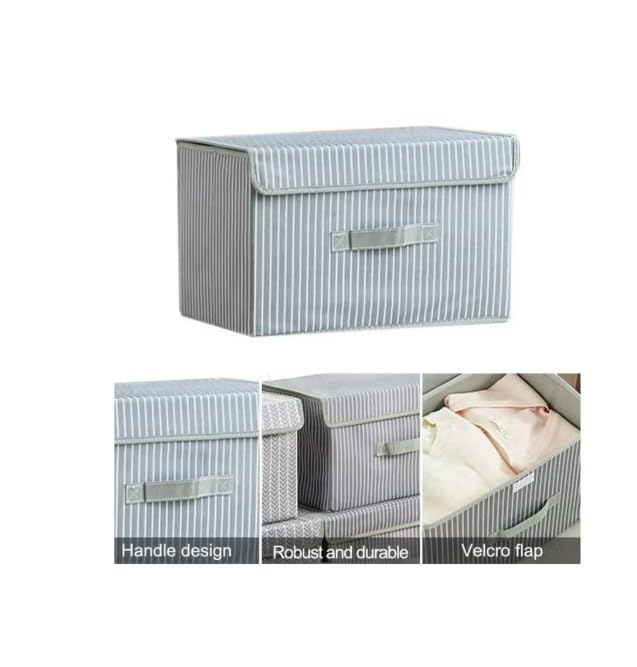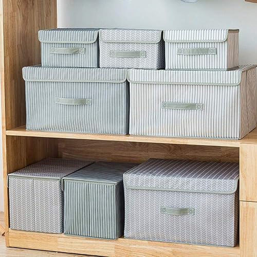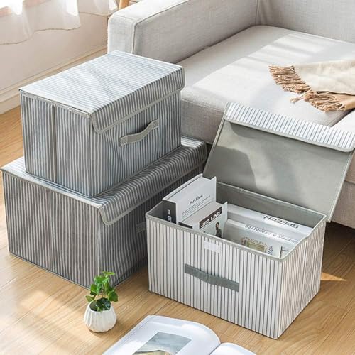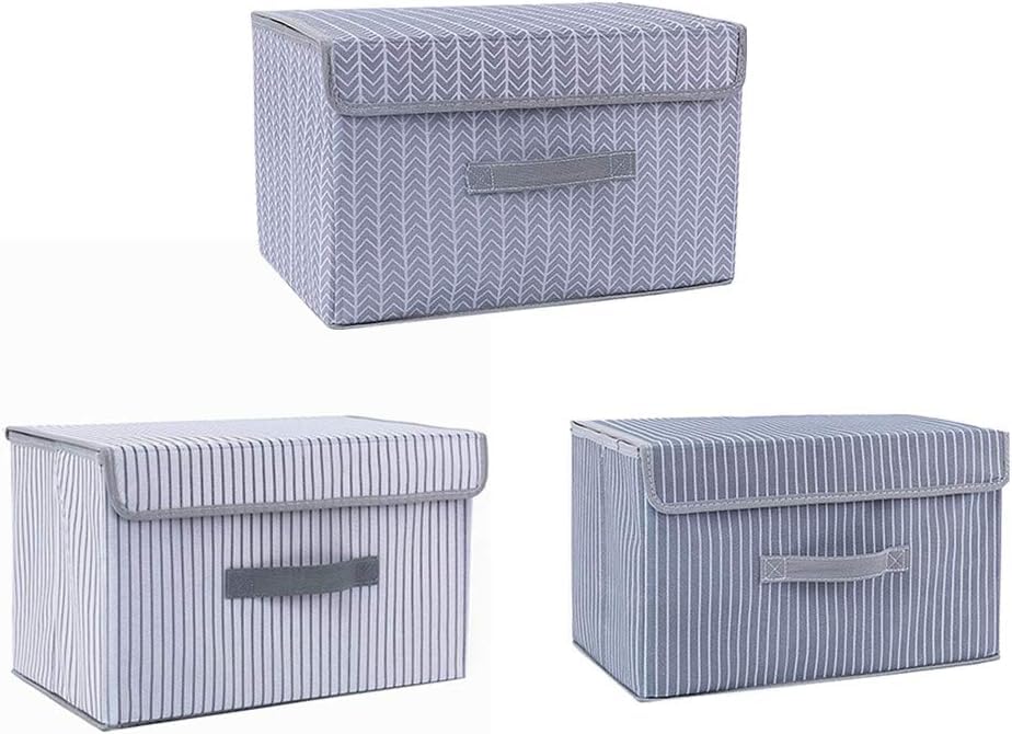 GENERIC - Foldable Storage Box Set with Lid, Grey Striped Pattern, Fabric Storage Containers for Clothes and Home Organization