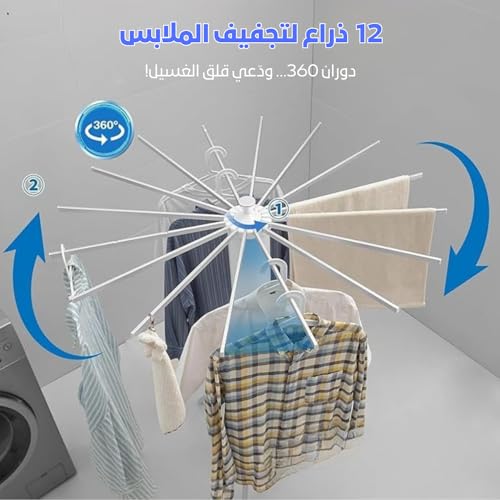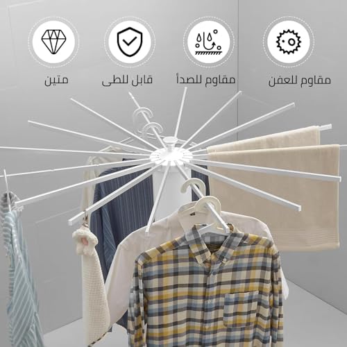 Generic - Foldable Tripod Clothes Drying Rack - Space Saving with 12 Stainless Aluminum Arms, 30 kg Capacity, Indoor/Outdoor, White