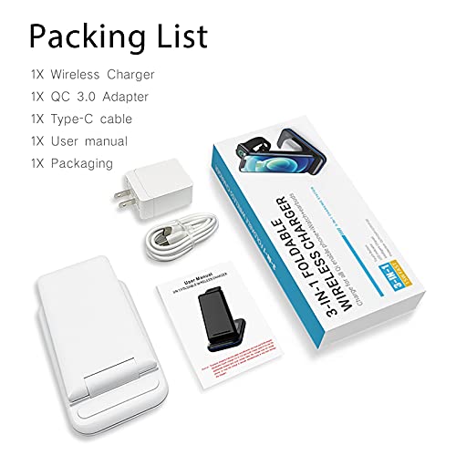 - 【تصميم قابل للطي ومناسب للحافظة】مع تصميم قابل للطي، يمكن حمله بعد الفك وتوفير المساحة، مما يجعله مناسبًا لوضعه في حقيبة الظهر أثناء السفر. شاحن لاسلكي 3 في 1 يدعم الشحن اللاسلكي الرأسي أو الأفقي مع تصميم زاوية إمالة لمشاهدة فيديو أفضل دون إزالة جراب هاتفك. (ملاحظة: يرجى إزالة الملحقات المغناطيسية أو المعدنية من حافظة الهاتف عند الشحن.)