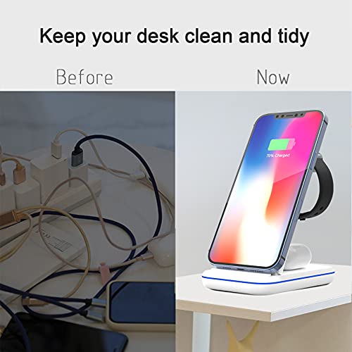 - 【قاعدة شحن لاسلكية 3 في 1】يضمن حامل الشاحن اللاسلكي المعتمد من كيو اي بتصميم مطور ورقاقة داخلية شحنًا لاسلكيًا آمنًا وسريعًا، ويمكنه شحن 3 أجهزة وايفون ووتش وايربود/ ايربودز برو في نفس الوقت. تجنب تشابك كابلات الشحن والتشابك بشكل مثالي، حافظ على سطح المكتب مرتبًا. مناسبة للاستخدام في المنزل والمكتب.