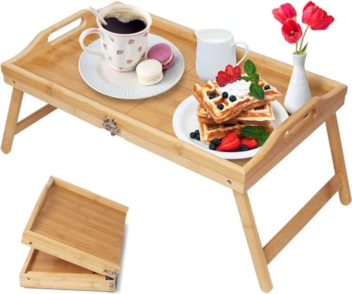 Generic - Foldable Wooden Breakfast Table, Stylish and Durable Design with Stand for Serving Food and Drinks on Bed or Sofa, Perfect for Relaxing or Working from Home