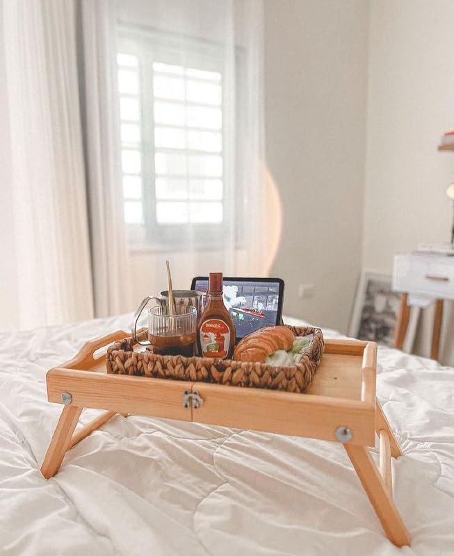 - Practical design: Folding wooden bed table with raised edges to prevent bowls and cups from sliding