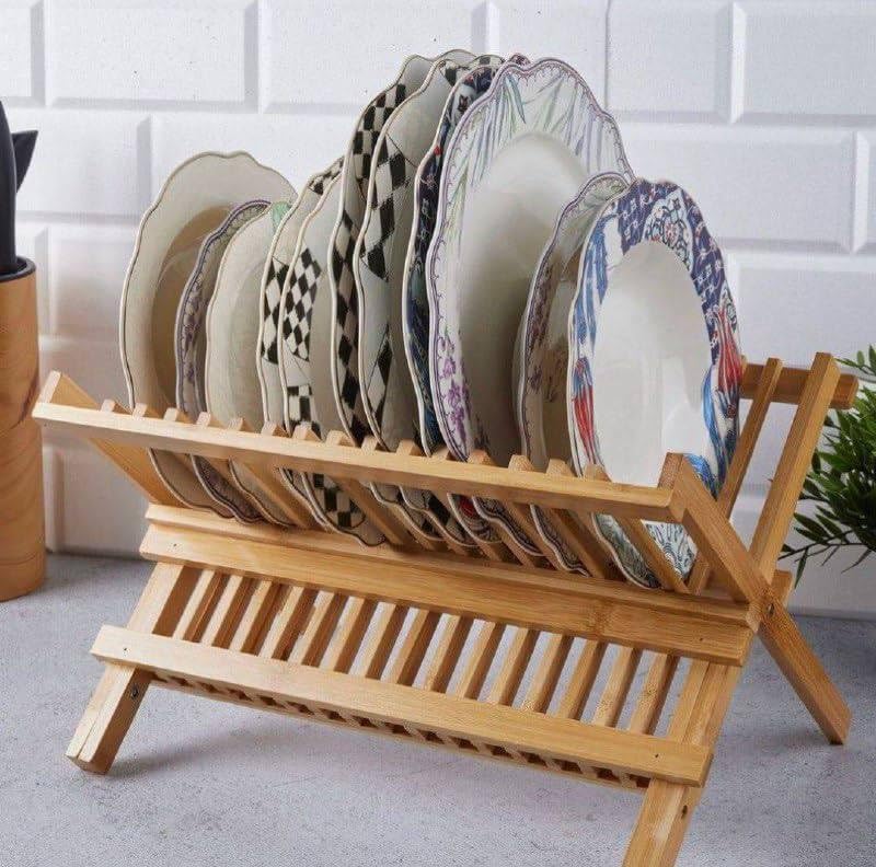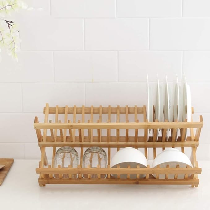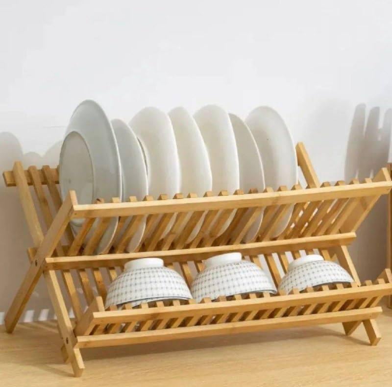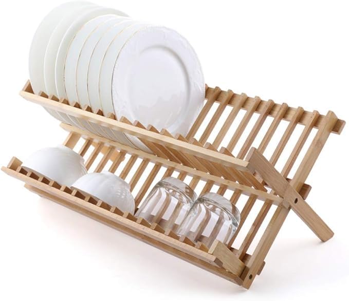 Generic - مطبقيه خشب دورين قابلة للطي لتجفيف ورص الأطباق والأكواب – تصميم متين مقاوم للماء موفر للمساحة