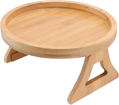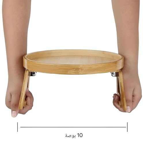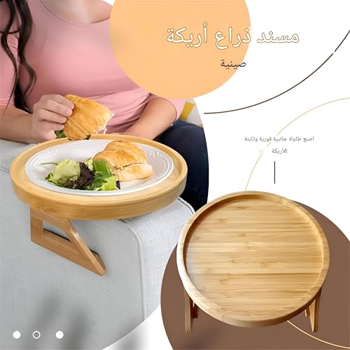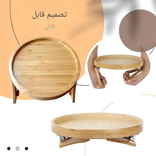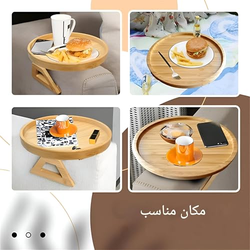 Generic - صينية خشبية قابلة للطي للمشروبات والطعام - ملحق مسند ذراع بمشبك دائري 25 سم مع قاعدة غير قابلة للانزلاق، مصممة لتقديم وتنظيم مريح على الكنبة، هيكل خشبي صلب، تصميم بلمسة نهائية غير لامعة