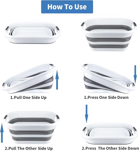 ADMIO - حوض استحمام قابل للطي ودلو محمول بلاستيكي موفر للمساحة، وطبق غسيل سيليكون وسبت متعدد الاستخدامات