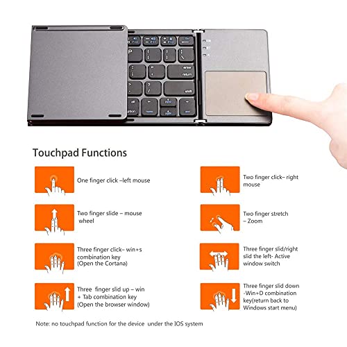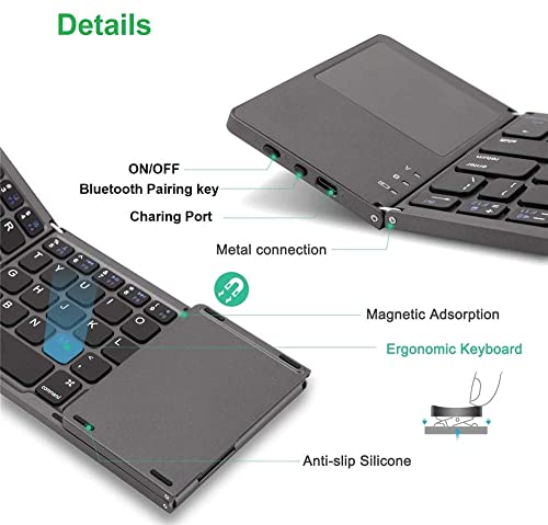 SKEIDO - Folding Bluetooth Keyboard, Rechargeable Tri-folding Wireless Foldable Mini Keyboard with Touchpad for Tablet or Other Cell Phones (Dark Gray), JP02