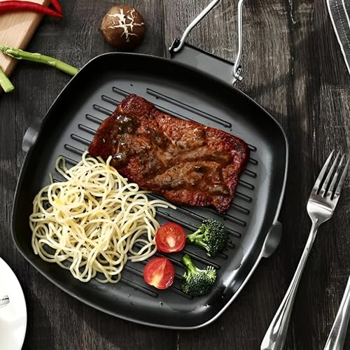 - Made of high-quality iron, this grill pan features a food-grade non-stick coating that enhances durability and efficiency. Excellent materials ensure that the pan heats up quickly, which significantly reduces the cooking time while maintaining its shape and integrity. This means that you can enjoy perfectly cooked meals without worrying about deformation or wear, which makes it a reliable addition to your kitchen arsenal for years to come.
