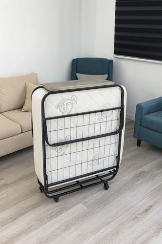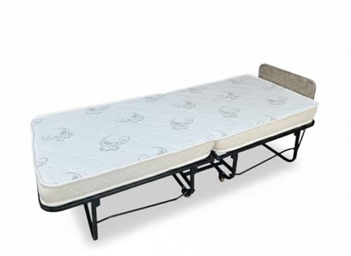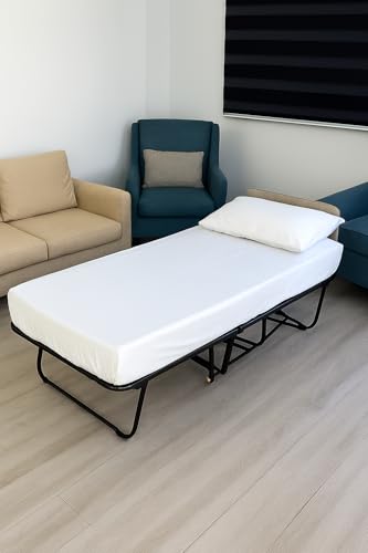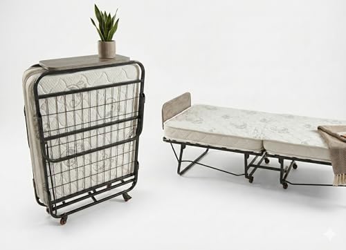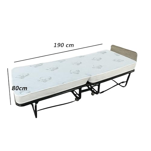 Generic - Folding Guest Bed with Mattress, Metal Frame with Wheels, Portable Roll-Away Bed