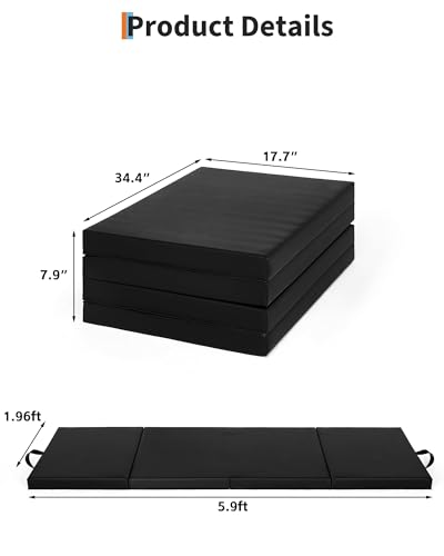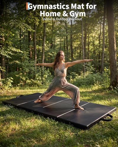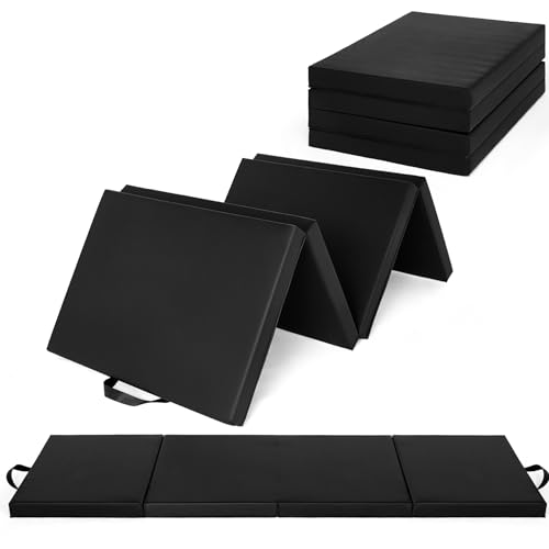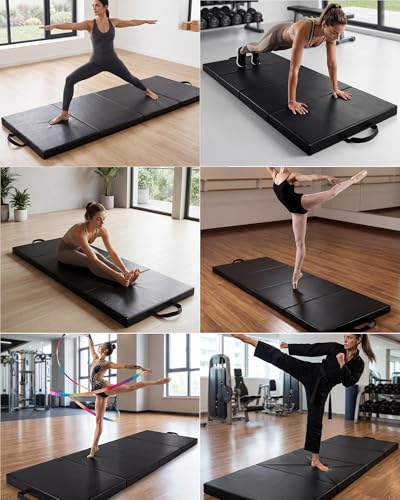 PeakPursuit - Folding Gymnastics Mat, 6x3Ft/ 6x2Ft Thick Portable Exercise and Tumbling Pad for Home Gym, Pilates, Aerobics and Martial Arts Training, Four-Panel Folding Design