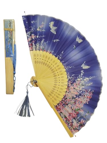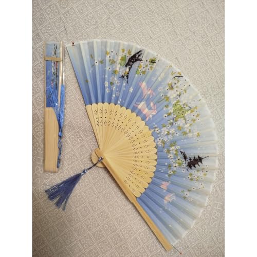 Generic - مروحة يدوية قابلة للطي ، من قماش حريري واضلاع من الخيزران (ازرق)