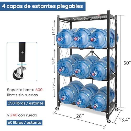 - ✅【Stable and Durable Storage Shelf】The metal shelves are made of highly durable iron, rust-proof, anti-corrosive and stable. It can support 600 lbs (150 lb/shelf) without wheels, and can hold 240 lbs (60 lb/shelf).