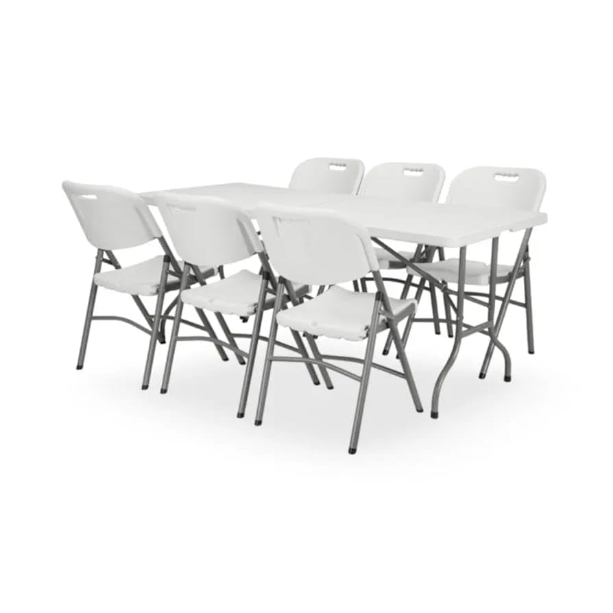 - 🔹【COMPLETE 6 SEATER SET】Includes one rectangular folding table (180x75cm) and six matching folding chairs with durable beige plastic seats. Ideal ready-to-use dining and seating solution for events, gatherings, meetings and family occasions.