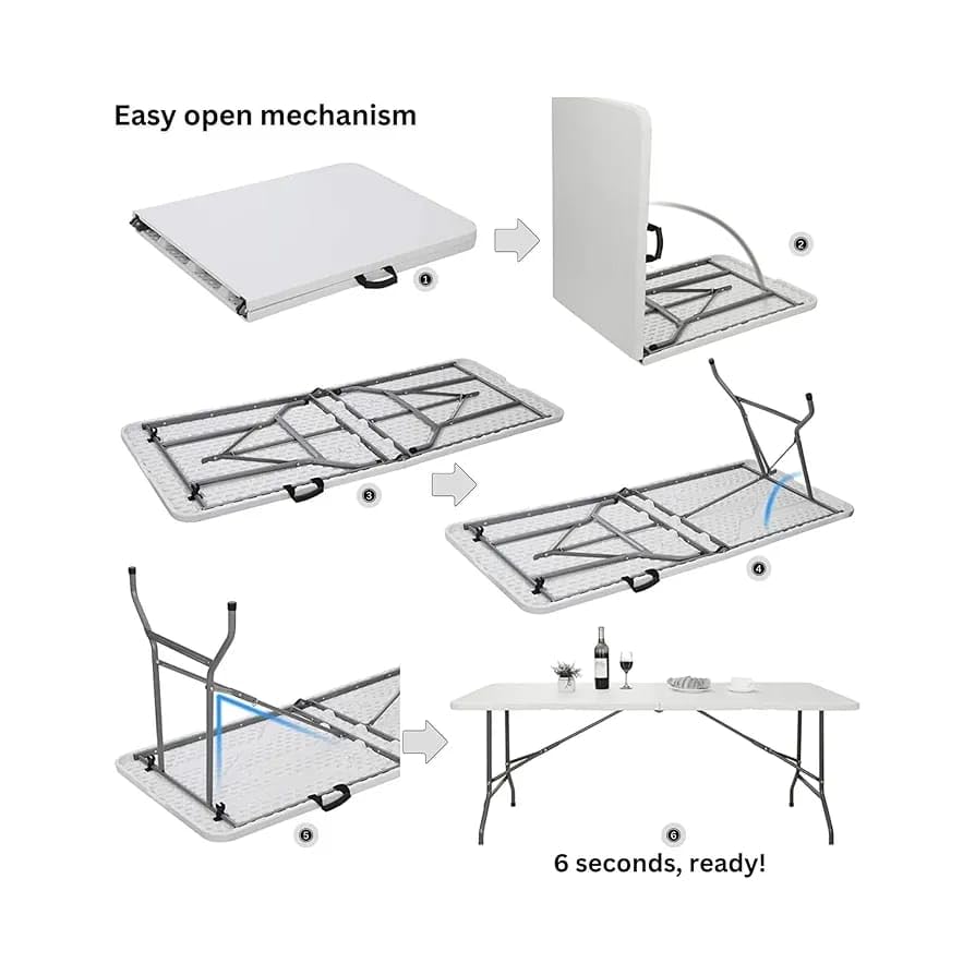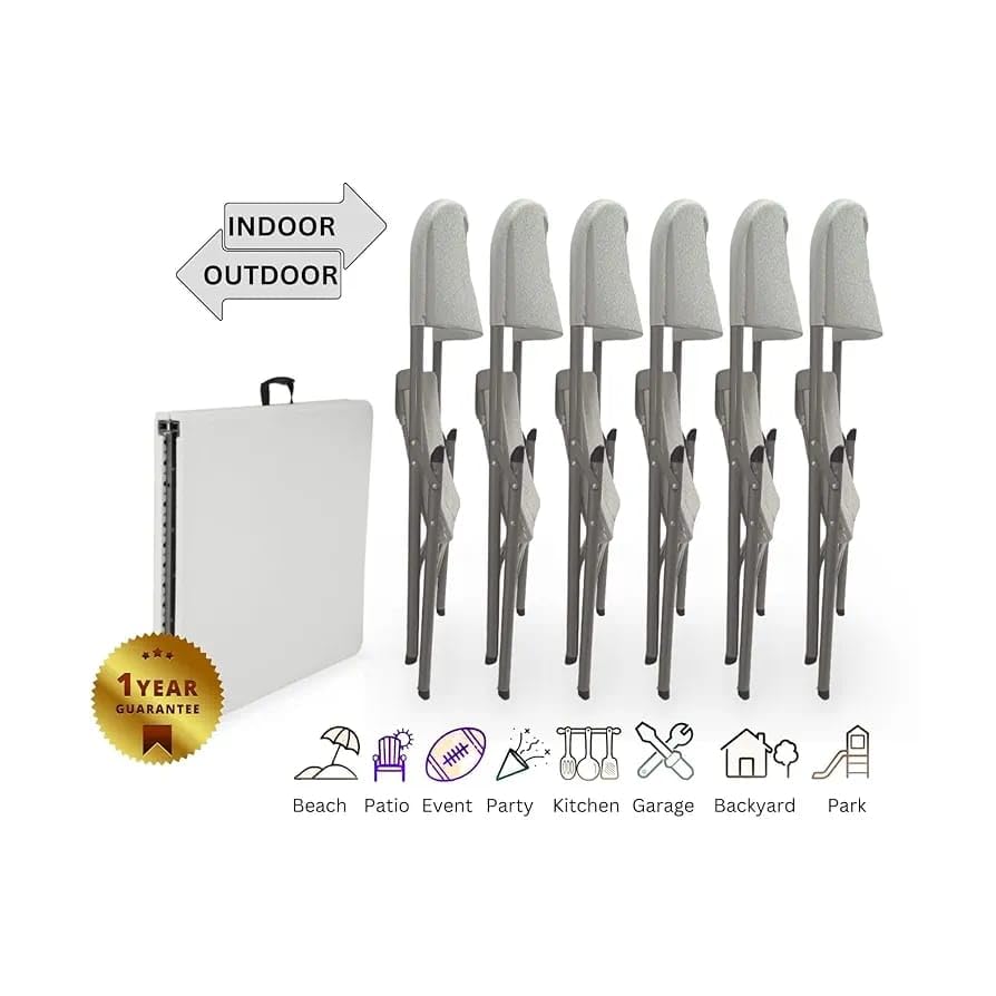 - 🔹【VERSATILE INDOOR & OUTDOOR USE】Perfect folding dining set for garden parties, camping trips, weddings, banquets, exhibitions, training sessions and office meetings. Provides practical temporary seating and dining anywhere you need it.