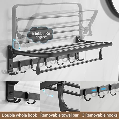 Generic - (Folding Towel Bar, 304 Stainless Steel Wall Mounted Bathroom Shelves (Size:60cm Length) - Black)