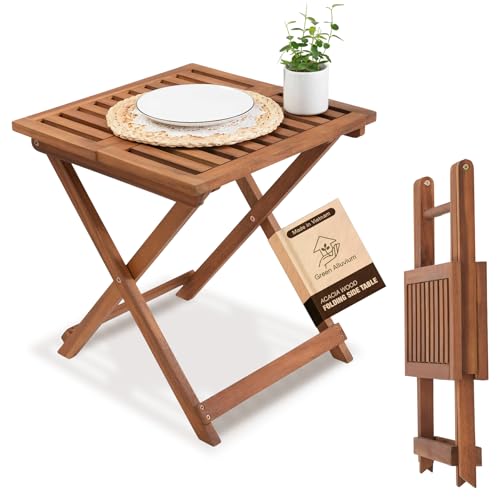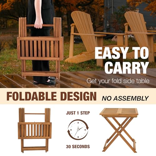GREEN ALLUVIUM - Folding Wooden Side Table – Premium Portable Foldable Table for Outdoor & Indoor Use, Patio, Camping & Small Spaces – Perfect with Adirondack Chairs – Golden Teak Finish
