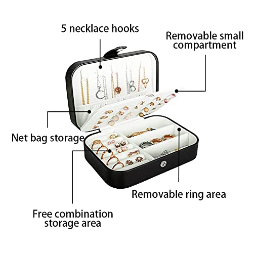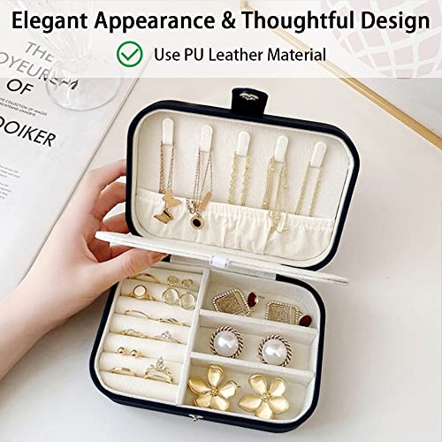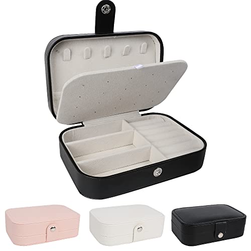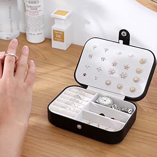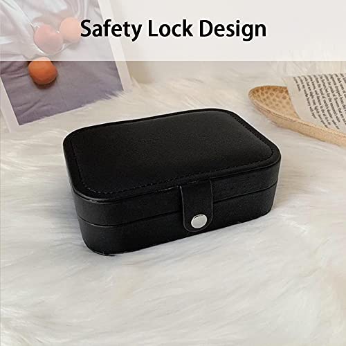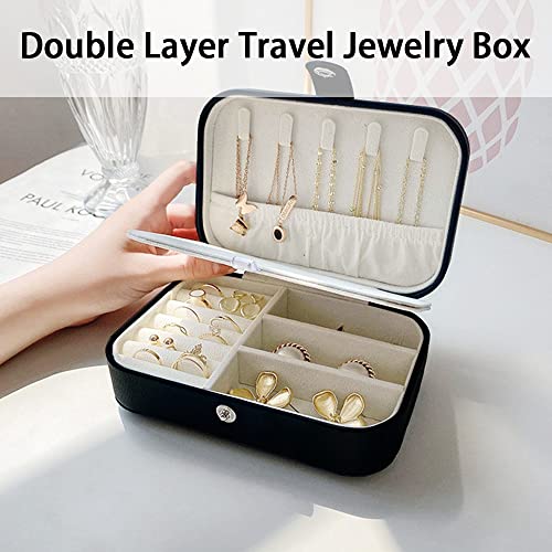 FOME - FOME Jewelry Box Organizer, Double Layer PU Leather Small Jewelry Travel Case PU Leather Jewelry Storage Case for Rings Earrings Necklace Bracelets Jewelry Gift for Girls Women (Black)