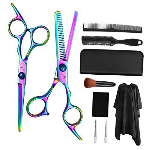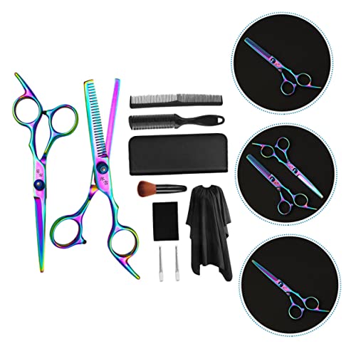 - مجموعة رداء تصفيف الشعر: تتضمن مجموعة مقصات قص الشعر هذه مقص أسنان مسطحة وشالات شعر وفرش شعر وأمشاط وقطعة قماش للتنظيف.