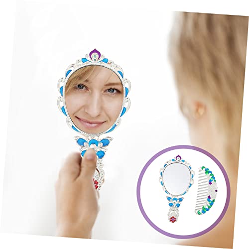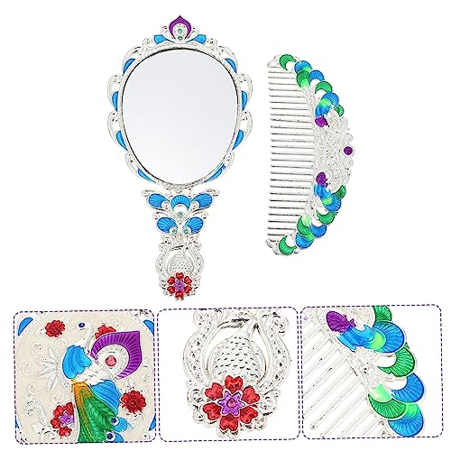 FOMIYES - FOMIYES 1 Set Peacock Comb Mirror Wedding Sets Dresser Mirror Wedding Ceremony Decorations Handheld Mirror Unique Comb Set Portable Makeup Handheld Vanity Mirror Alloy Silver Mini China