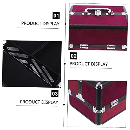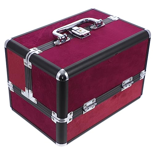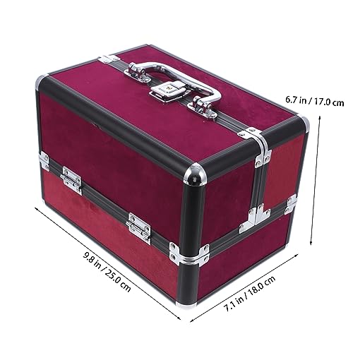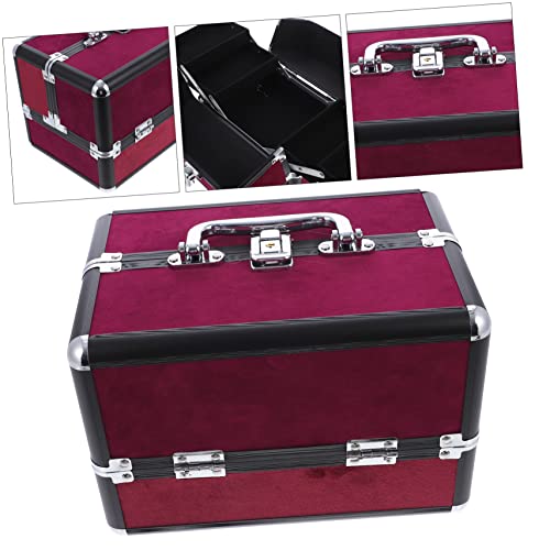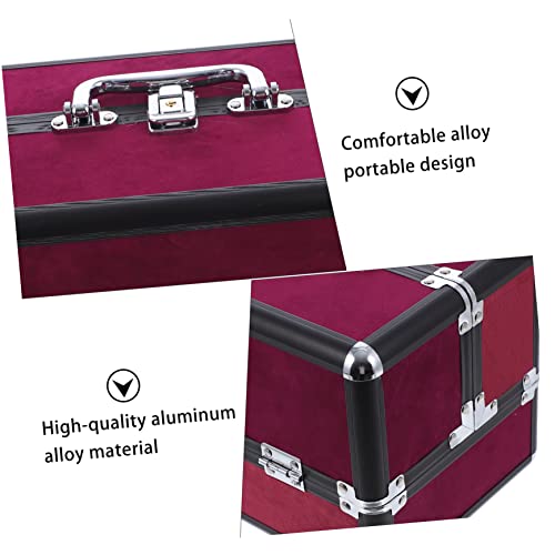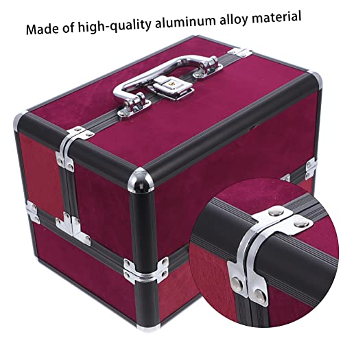 FOMIYES - فوميز. شنطة مستحضرات تجميل مصنوعة من خليط معدني من الالومنيوم، شنطة تخزين محمولة للسفر من خليط معدني من الالومنيوم، احمر داكن