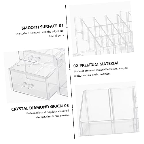 - Makeup holder: ✅【cosmetic display case organizer with 3 drawers】: with 3 drawers and 16 slots , drawers of different sizes meet the storage of palettes, perfumes, lipsticks, lip glosses, nail polish, jewelry and make up brushes moisturizers masks lotions bottle