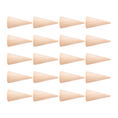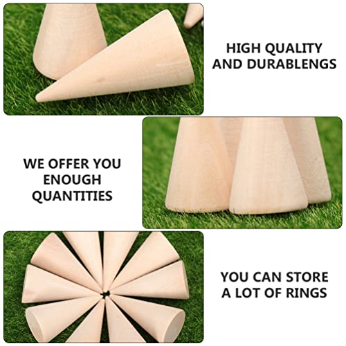- حامل عرض مخروطي من الخشب، حامل عرض مجوهرات الاصبع، مخروط خشبي للحرف اليدوية (طبيعي، شكل عمودي)